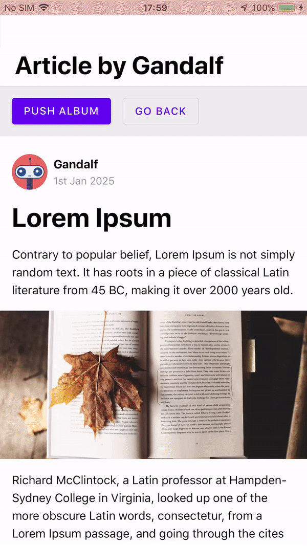 …so, we have decided to export native stack (FragmentTransactionon Android and UINavigationControlleron iOS) in order to deliver an even better experience.
